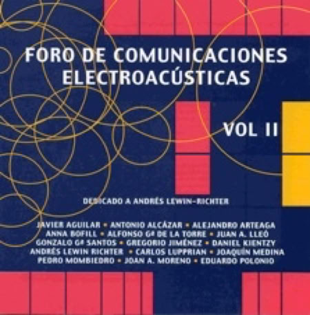 Foro de Comunicaciones Electroacústicas. Vol. II. (1999). This album is dedicated to the musician Andrés Lewin-Richter, one of the pioneers and driving forces of electroacoustic music in Spain, and comprises works of various composers, including “Delirio”by J.Medina and M.Lorente.